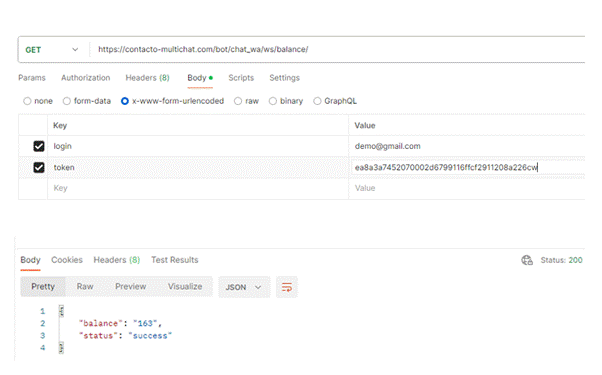 Endpoint: https://contacto-multichat.com/bot/chat_wa/ws/balance/