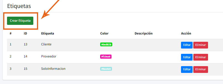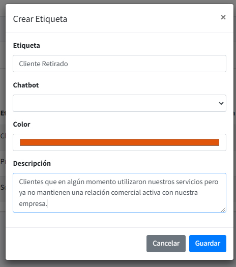 4. Diligencie los campos: Nombre de etiqueta, Color y Descripción y haga click en GUARDAR