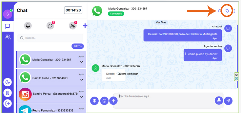 Una vez creadas las etiquetas, los agentes pueden asignarlas a los contactos