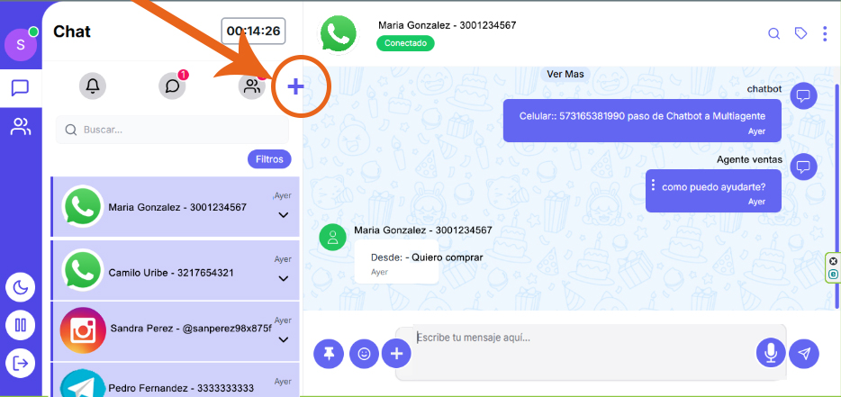 En algunas ocasiones, necesitará iniciar una conversación con alguno de sus contactos. Nuestra plataforma le permite hacerlo siempre que cuente con el servicio de Notificaciones de WhatsApp para este canal.